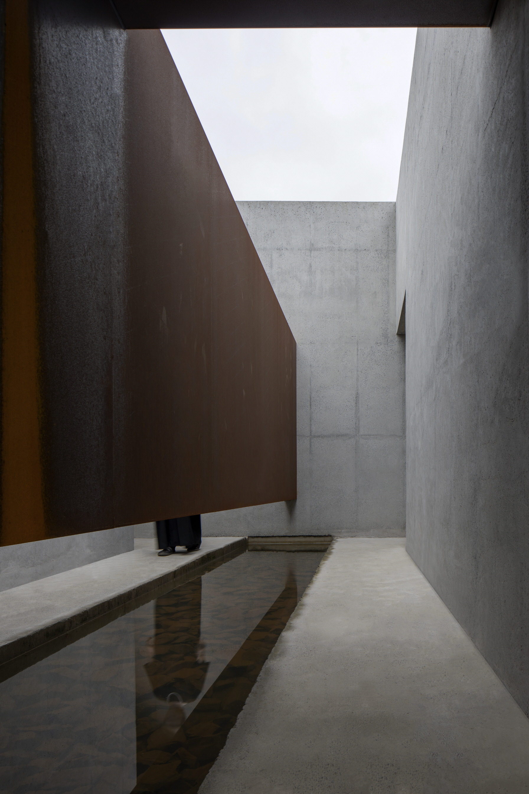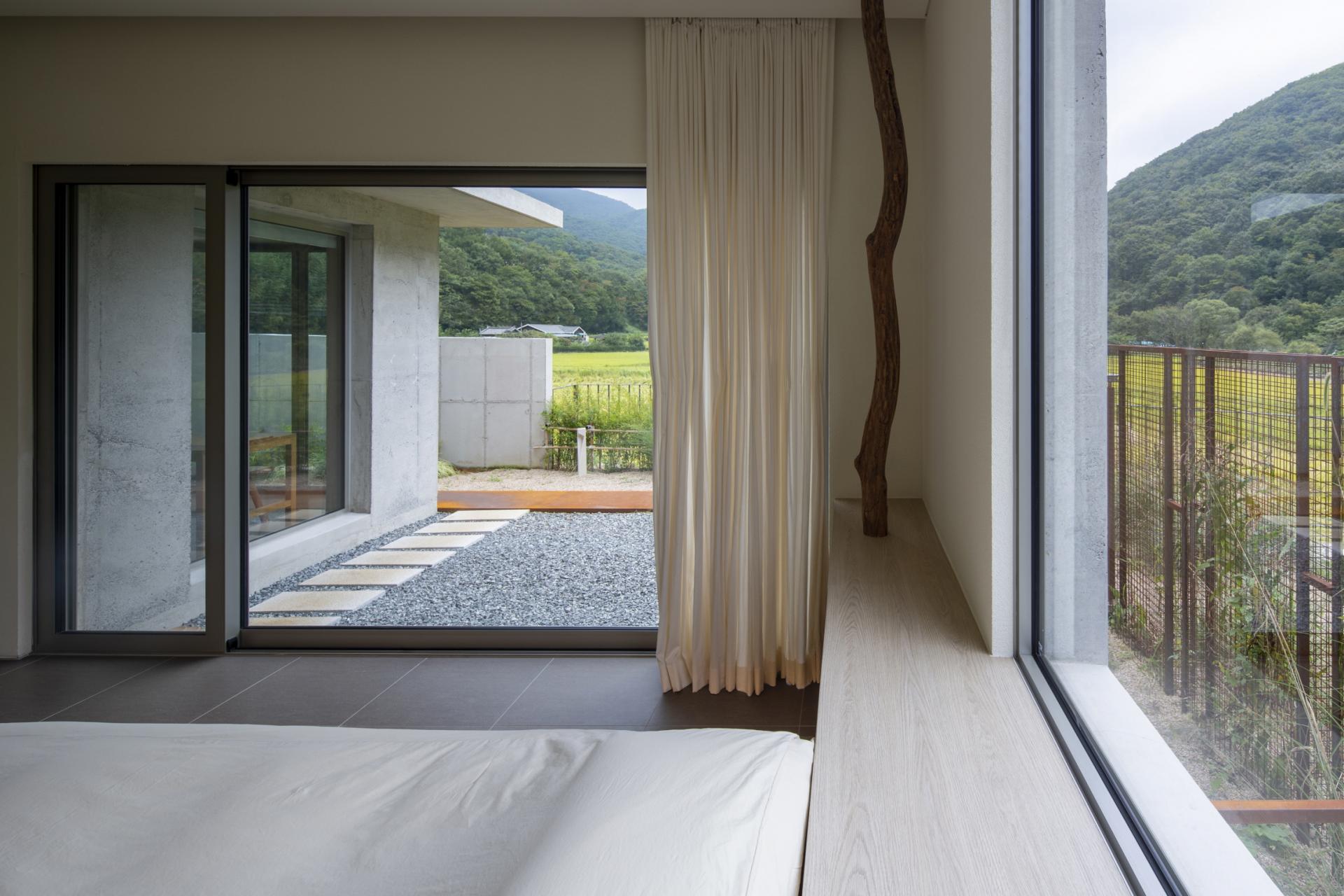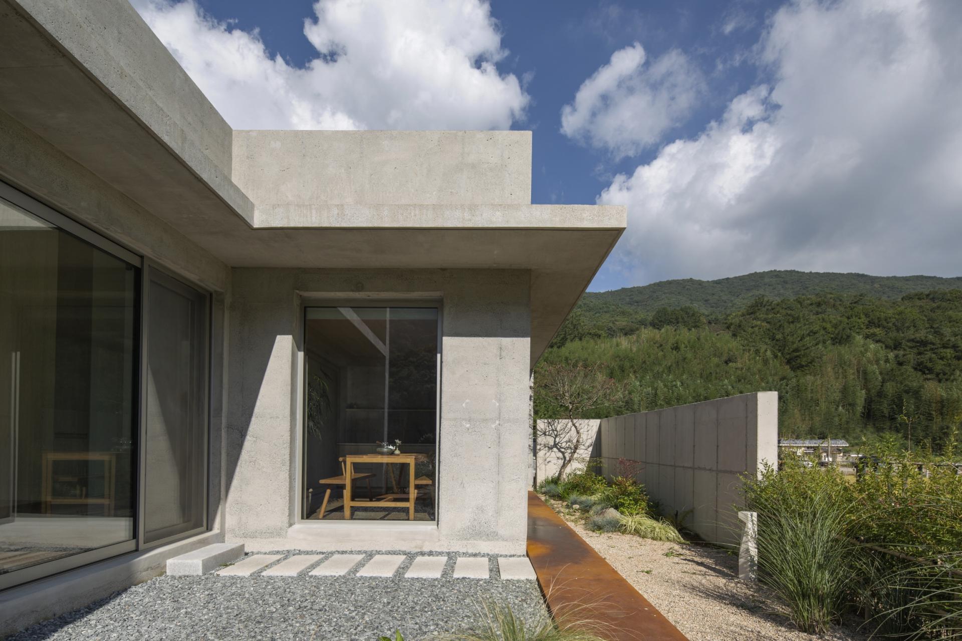 이 장소의 여정은 투박하지만 단단한 물성의 덩어리로 동선을 이끄는 것으로 시작한다. 이는 세상 한복판 고독이라는 자유로움 속에서 그윽한 세계로 들어가기 위한 경계의 문이다. 대나무 숲을 지나는 그늘진 길과 바람소리, 잔잔한 못에 담긴 해질 녘 석양과 마주함은 몸과 마음을 이완시키고 자연과 동화됨으로써 밖의 세상과의 간극을 증폭시킨다. 전이의 매개는 존재하나 갑작스러운 변주보다 수묵이 종이에 서서히 번지듯이 대기에 젖어 들고, 묵힌 흔적을 서서히 지워냄으로 안식에 집중하기 위함이다. 또한 공간으로 들어가고 나오는 과정속에서 산과 하늘을 향한 열림은 모호한 경계를 만들며 땅이 가진 정취를 겸허히 받아들이되, 적절한 닫힘으로 정적을 깨뜨리지 않는 고요함 속에 오롯이 몰입되는 선미鮮媚를 추구하였다.