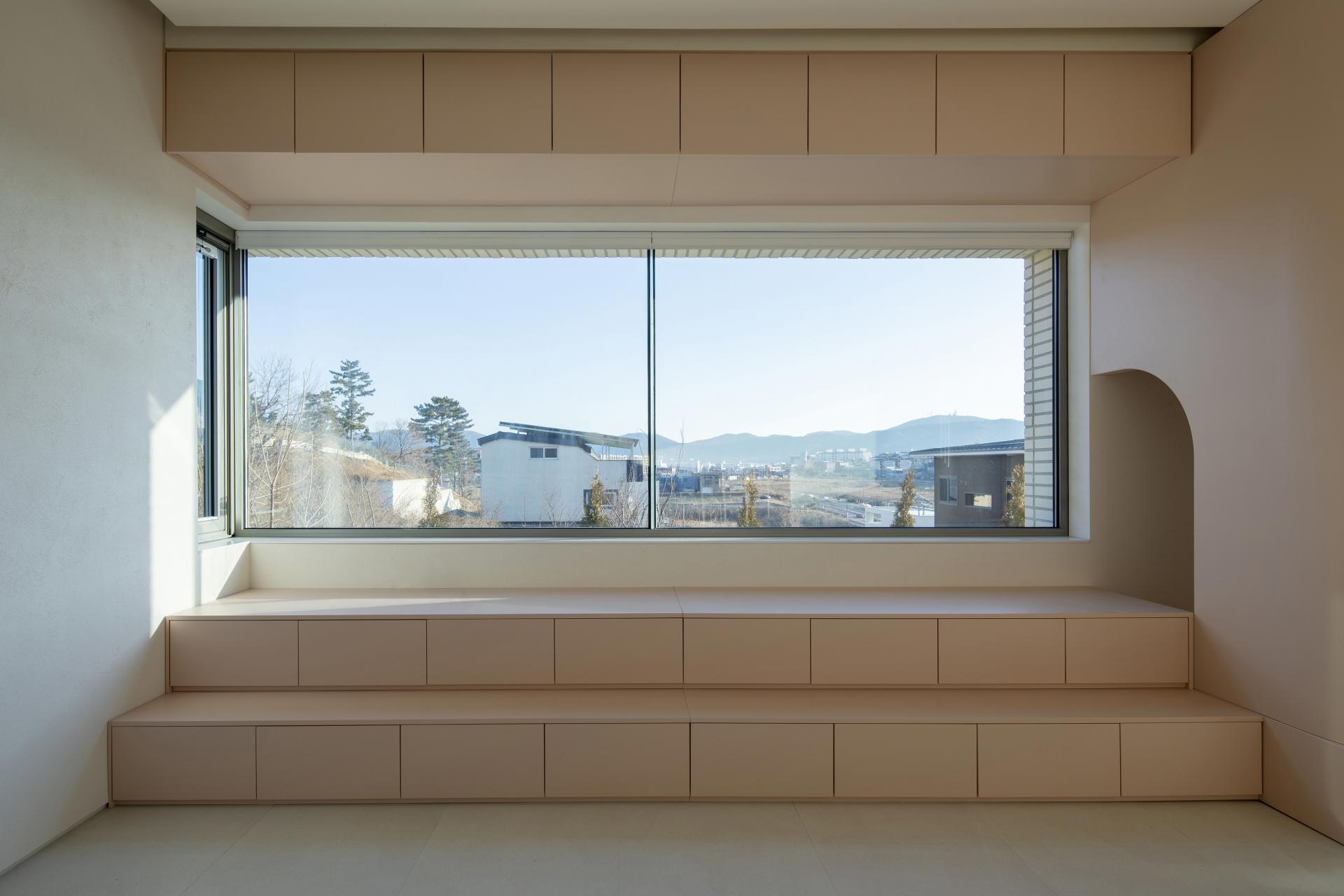 The second space worked on with the clients for Bakery & Roasting Café, La Mer PANJI that we were first acquainted with in 2019 was their residential space, located in a complex of single household detached homes in Ulsan. As our clients, who operate a large café together, needed a place of repose formed through a balance of work and rest, we planned for their \control of boundaries.