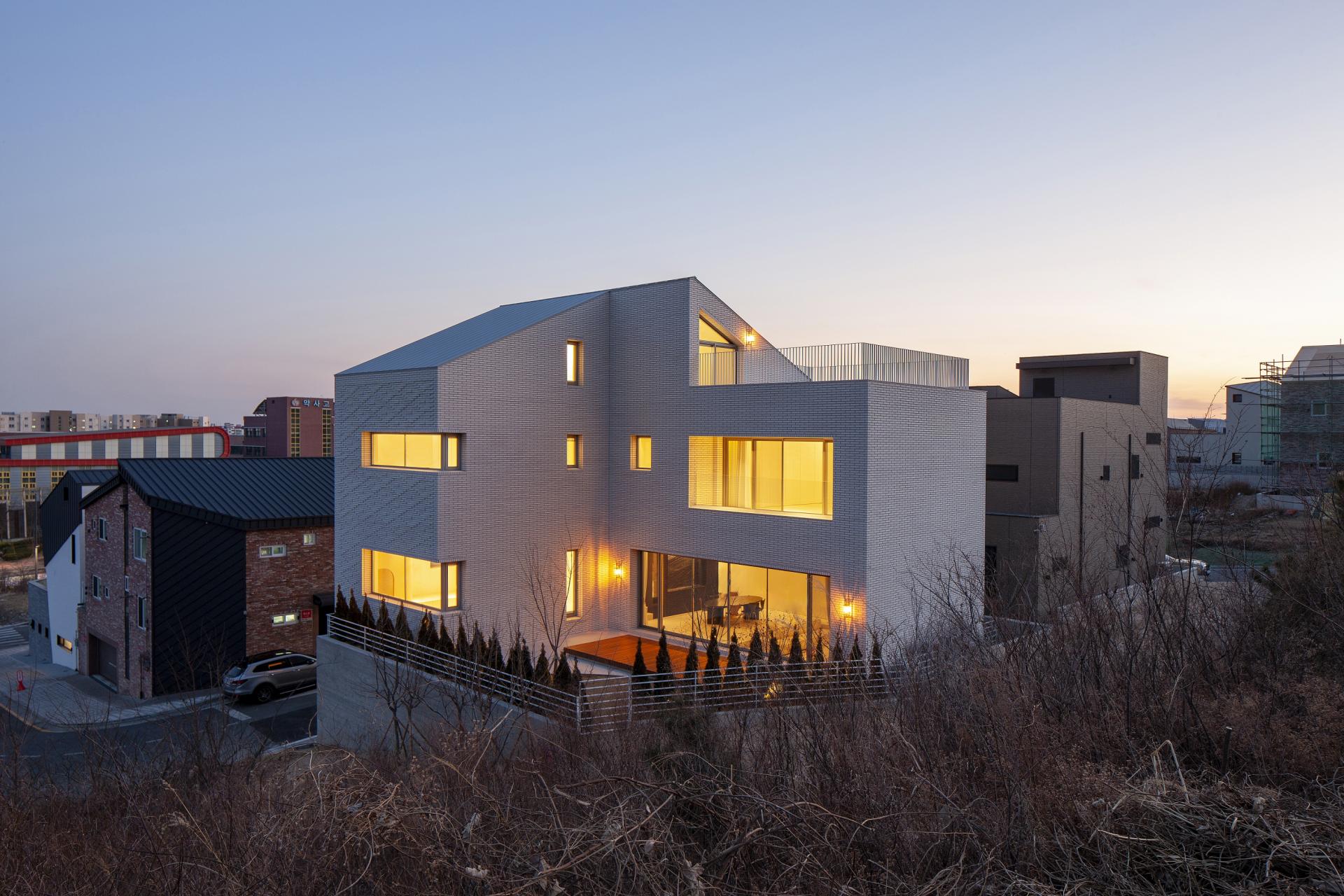 단독주택 단지의 특성상 인접해 있는 이웃들과 프라이버시를 완벽하게 해소하기 어려운 단점을 보완하기 위해 뒷산으로 열린 ㄱ자 형태로 건축을 배치하고 외부로부터 닫힌 건축의 형태의 긴장감을 독특한 표피를 통해 이완시키고자 했다. 뒤로 열린 건축은 주변의 시선과 소음으로부터 자유롭고 안전한 시간을 영위할 수 있으며 풍치의 자유를 얻을 수 있게 했다.