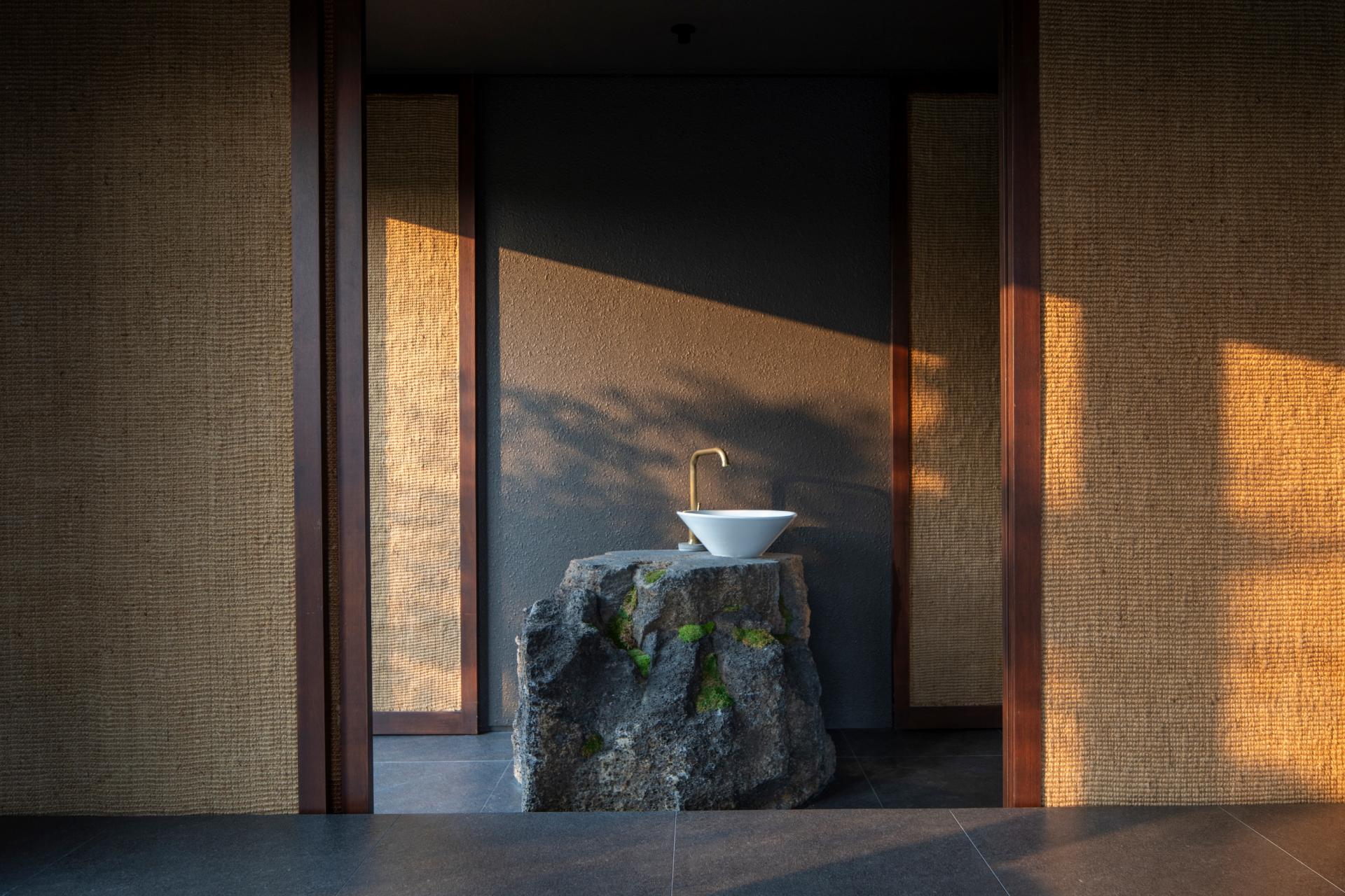 한라산과 오름이 어우러지는 제주의 봉성리 마을, 그 땅 위에 놓인 와타는 탐라의 미를 정제된 감각으로 담은 숙박 공간이다. 우리는 제주의 고전적 풍경과 그로부터 비롯된 사유를, 이 장소만의 감각과 정서로 이어지는 사색적 분위기로 구현하고자 했다. 땅의 서사적 아름다움은 차분한 음영의 그윽한 아취로 건축에 깊이를 더하며, 차분하고 오래된 정취로 새겨진다.