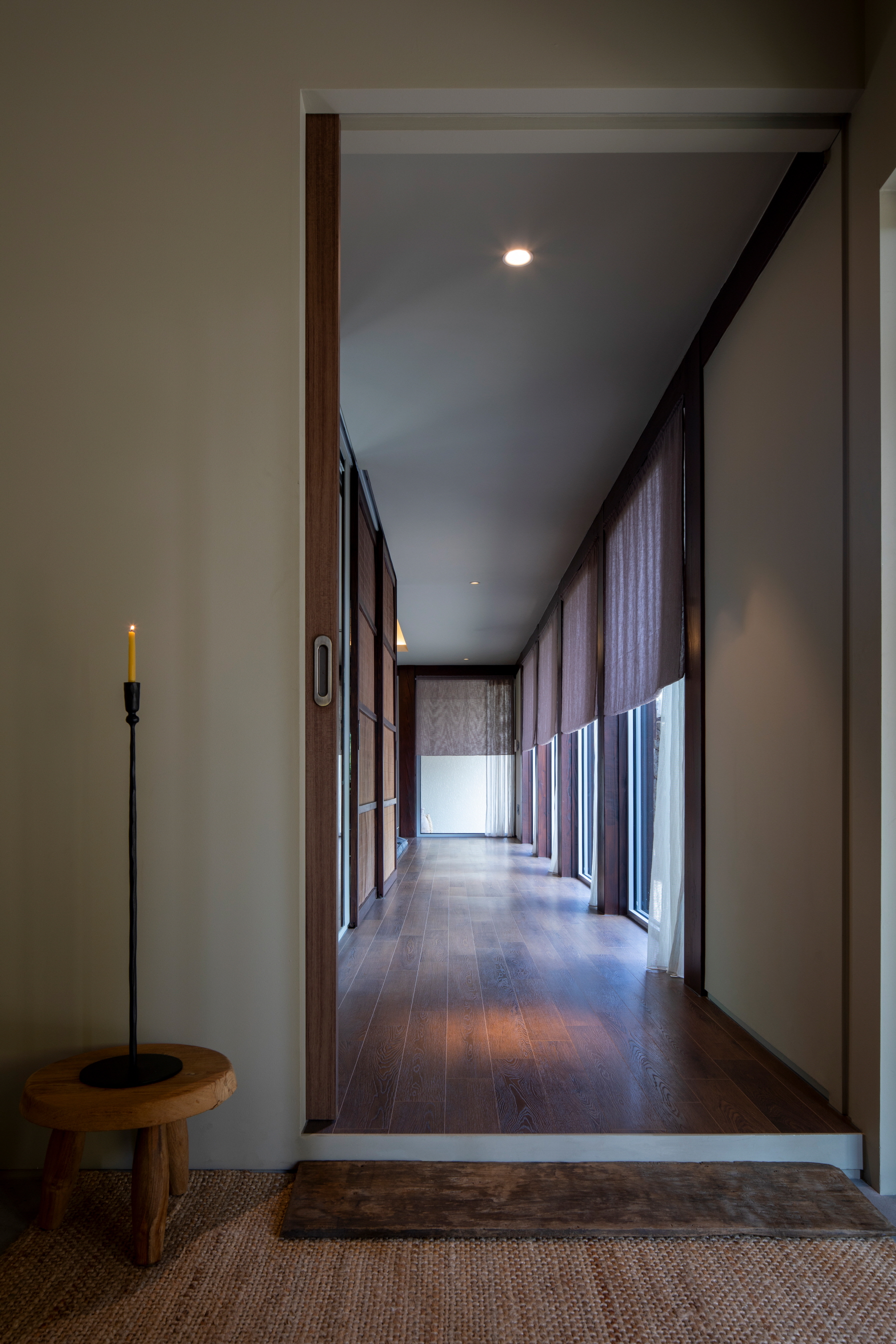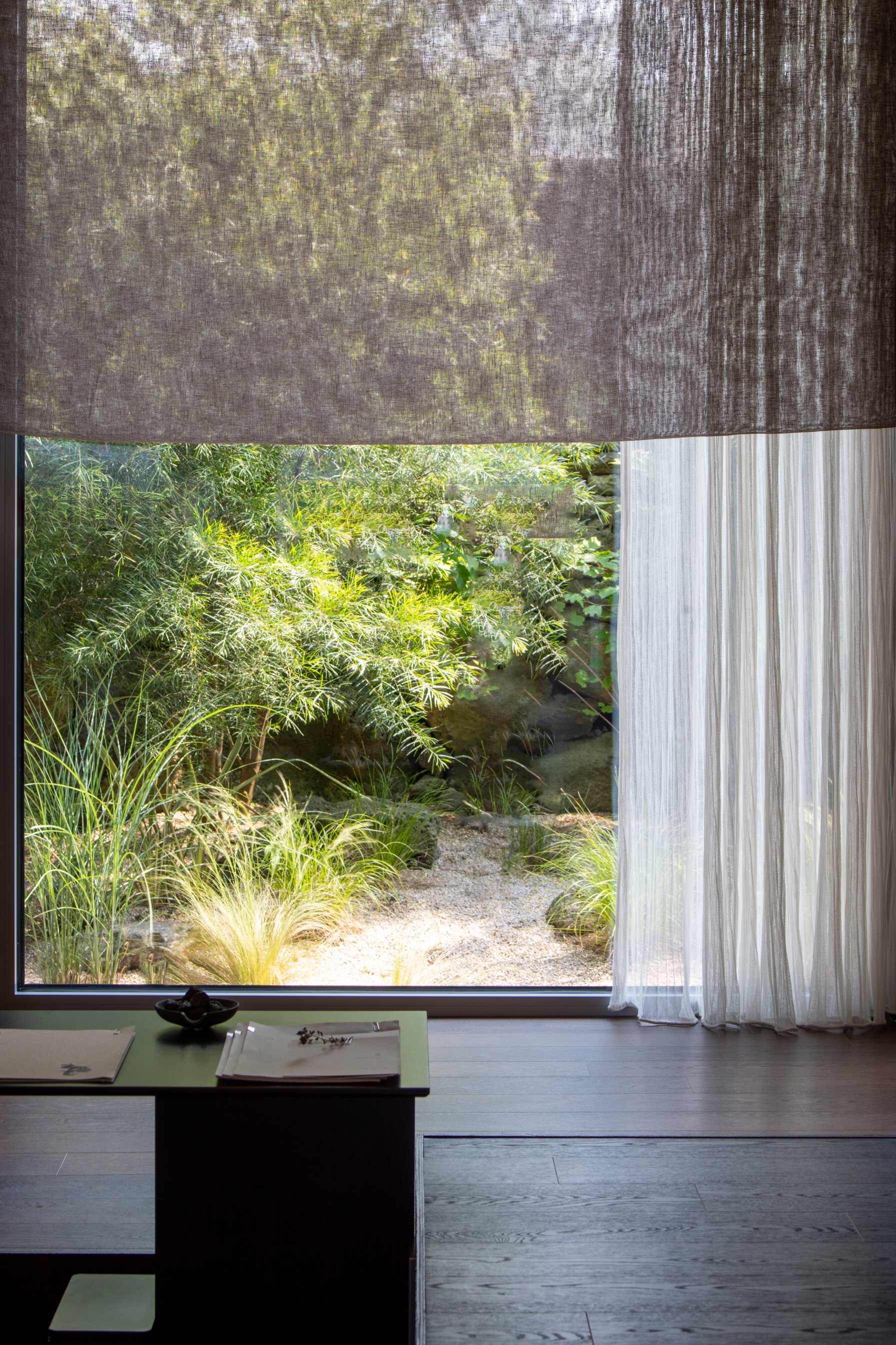 At the far end of the space lies a bathing room, conceived in the spirit of Mok-yok Jae-gye* (沐浴齋戒)—a ritual of purifying both body and mind—becoming a place for Seong-ui Jeong-sim* (誠意正心), where one refines the heart with sincerity and integrity. This was born from the owner’s approach to the space: a cultivated mindset of sincerity and moral clarity formed the foundation of the architecture, later extending into the way guests are welcomed and materializing in the spatial form of ritual cleansing. This bath, therefore, is not merely a space for hygiene but a place where the owner’s ethos is translated into physical form—a space of courtesy where guests may restore themselves to a state of clarity and tranquility.