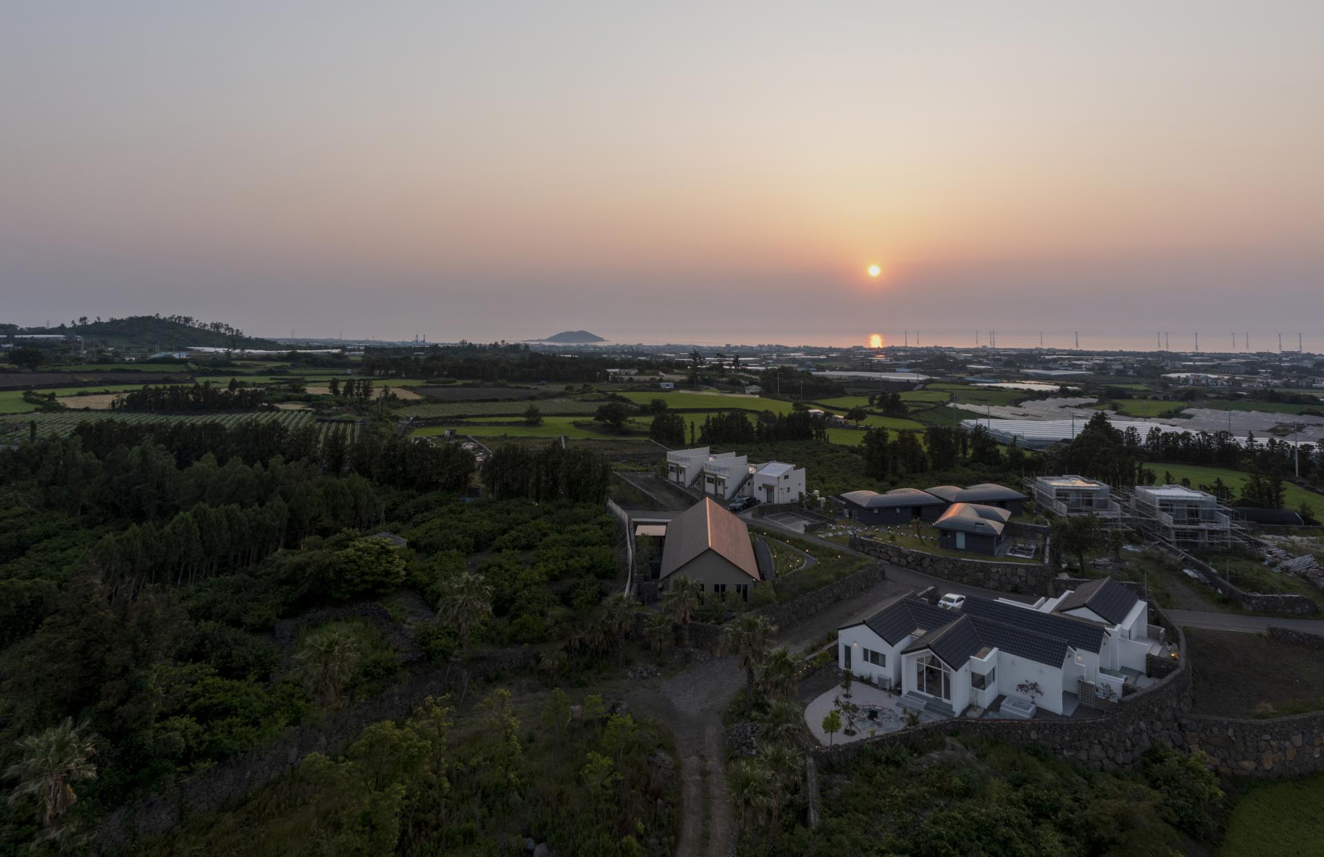 In Bongseong-ri, Jeju, where Hallasan Mountain and the oreums harmonize, Watar rests on the land as an accommodation space capturing the beauty of Tamna* through a refined sensibility. We sought to embody Jeju’s classical landscapes and the reflections born from them in a contemplative atmosphere unique to this place—an ambiance that flows into its own sensibility and emotion. The narrative beauty of the land deepens the architecture with a quiet gradient of shadows, leaving an impression imbued with a calm and time-worn grace.
