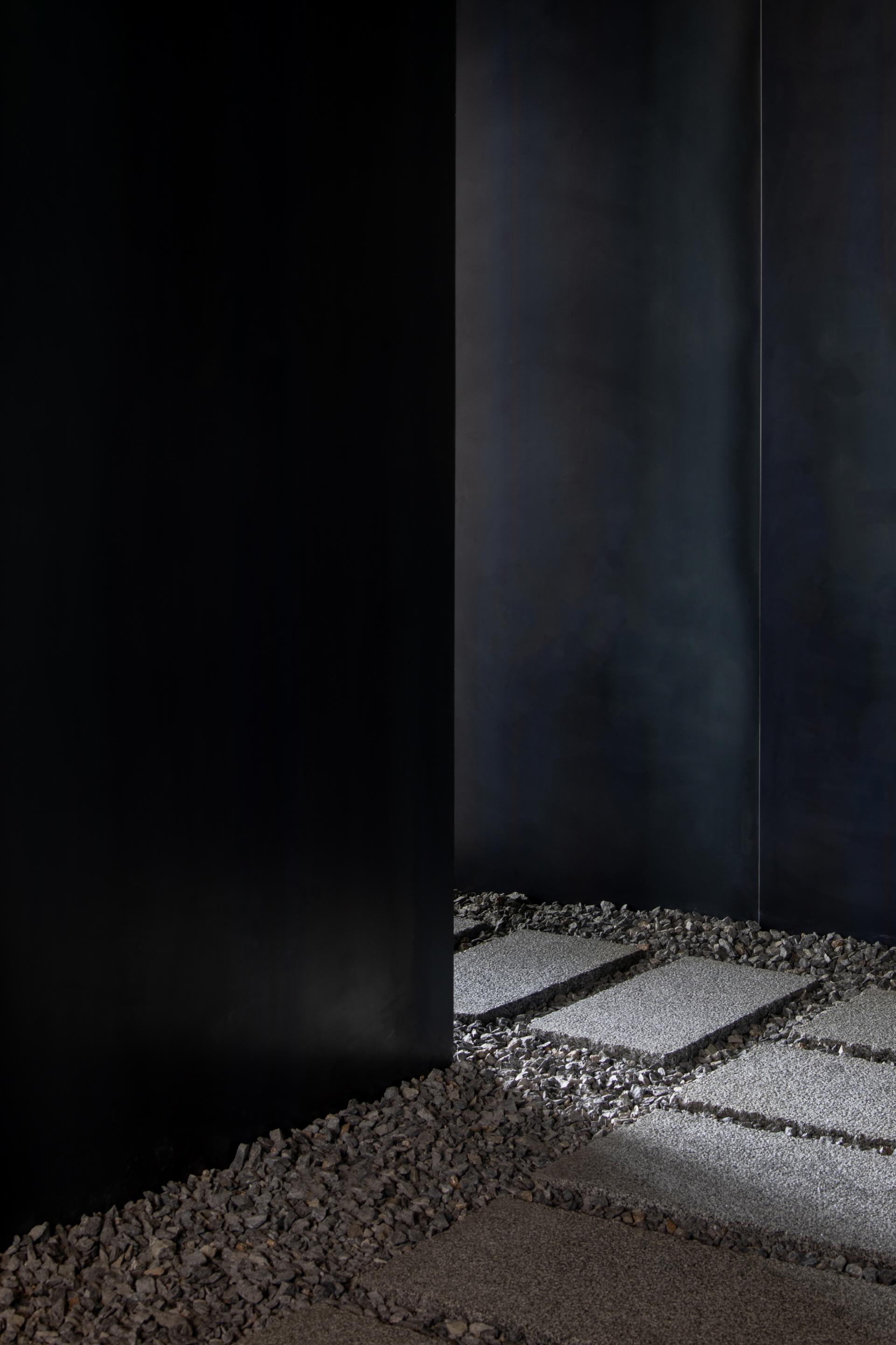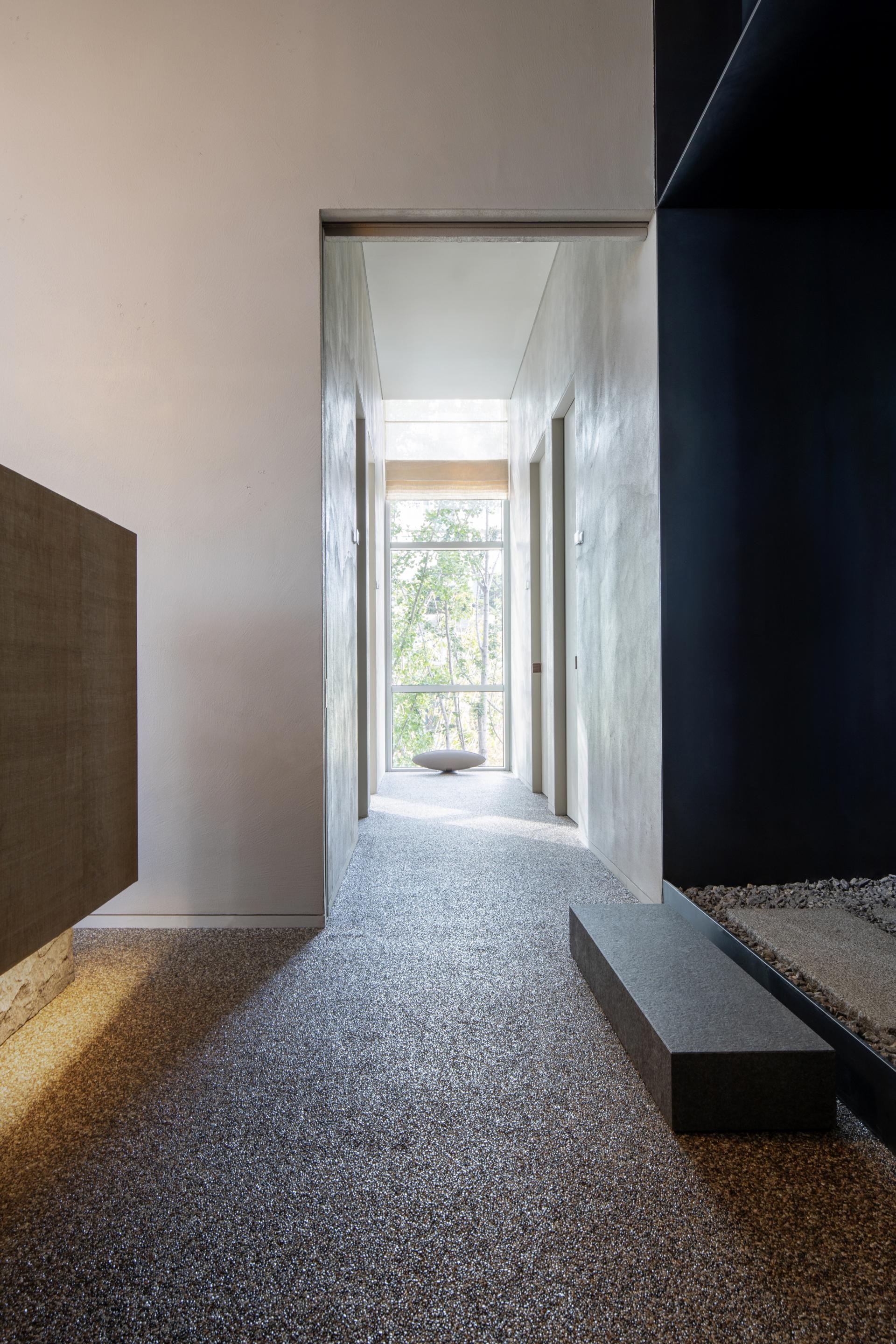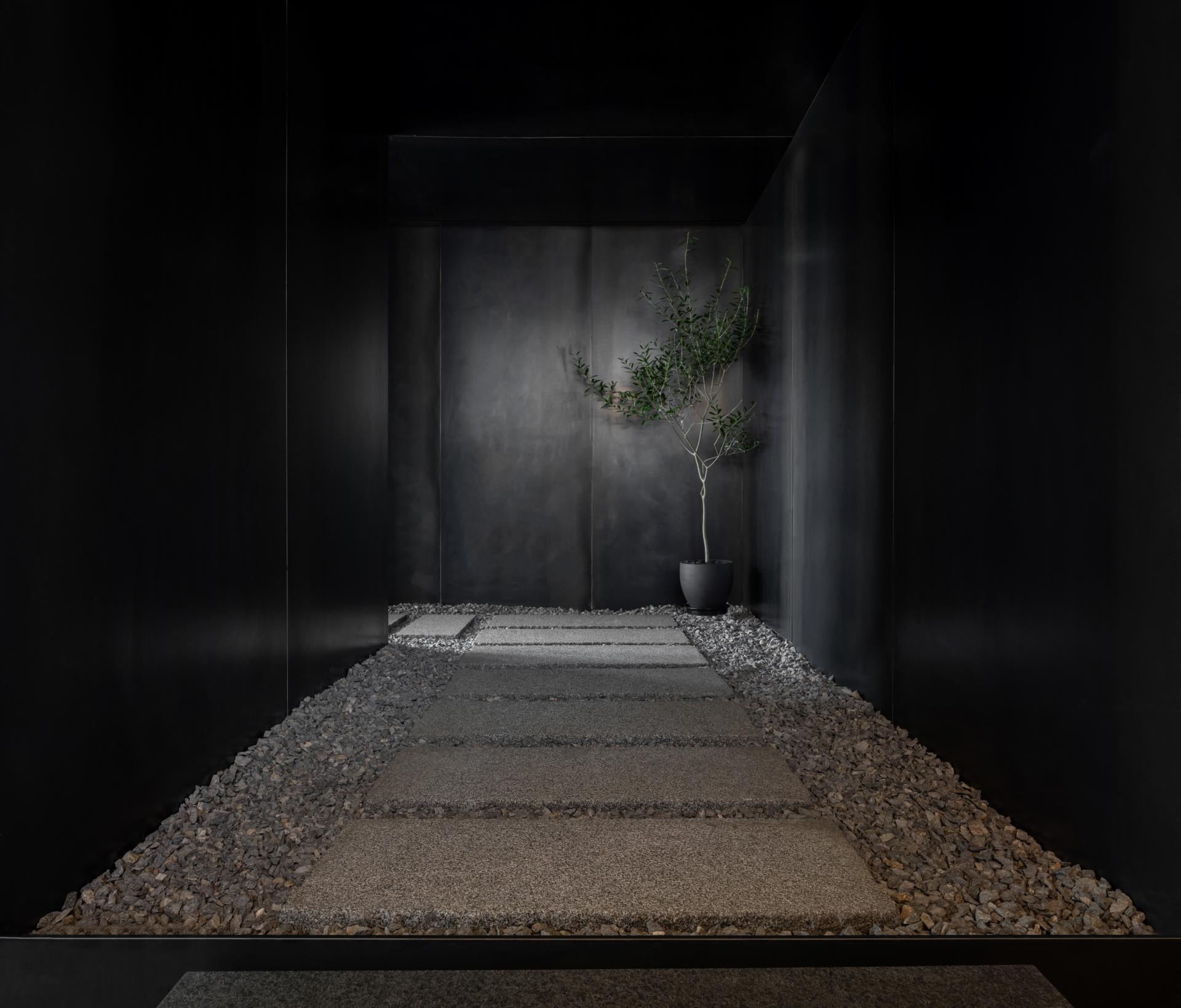 도시의 속도는 인간의 내면보다 먼저 반응하게 만들고, 바깥의 규율은 종종 존재를 객체로 환원시킨다. 이 의원의 진입부는 그 환원을 잠시 중지시키며, 주체가 다시 자기 속도에 대한 권리를 회복하는 첫 장면이다. 협소한 어둠과 바닥의 자갈은, 도시의 동선에 종속되었던 몸을 감각적 주체로 복귀시키고, 한 걸음씩 이동할 때마다 존재는 다시 자신에게 소환된다. 이곳에서 걷는 행위는 이동이 아니라 ‘나는 여전히 여기 있다’라는 존재적 선언이다.