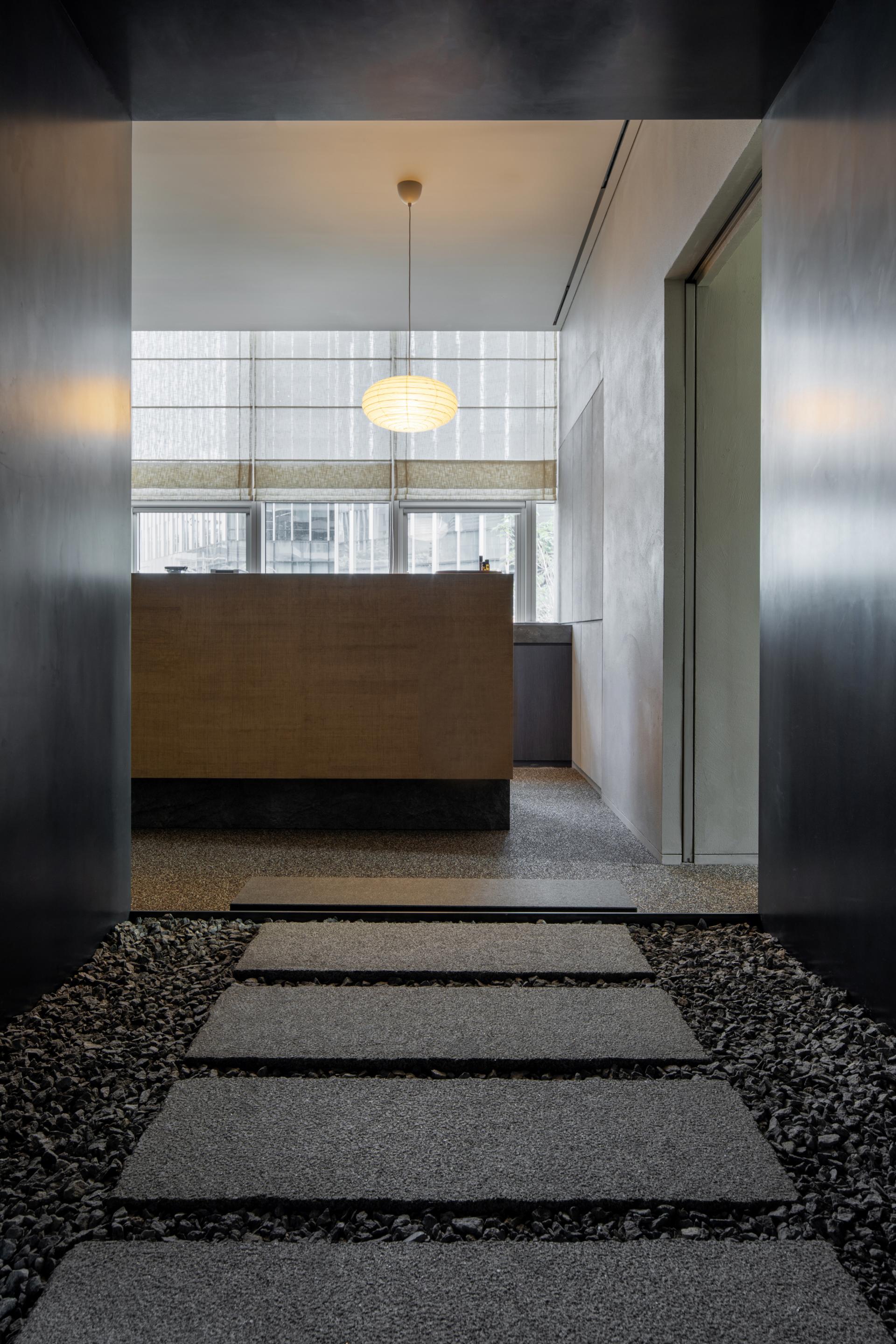이 공간은 단일한 감성을 강요하지 않는다. 서로 다른 기억과 정서를 품은 재료들—금속의 선명함, 자갈의 불규칙함, 회벽의 물성, 직물과 목재의 낮은 온기—은 충돌하지 않고 정확한 간격 속에서 배열된다. 정신적 회복은 파편을 지우는 것이 아니라, 파편이 무너지지 않을 수 있는 자리를 재배치하는 일이다. 공간은 그 재배치를 형태가 아닌 태도로 구현한다. 이 의원은 처음부터 시각적 미학이 아니라 관계의 심리적 안정과 치료적 효과를 지원하는 환경적 구성을 목표로 했다.