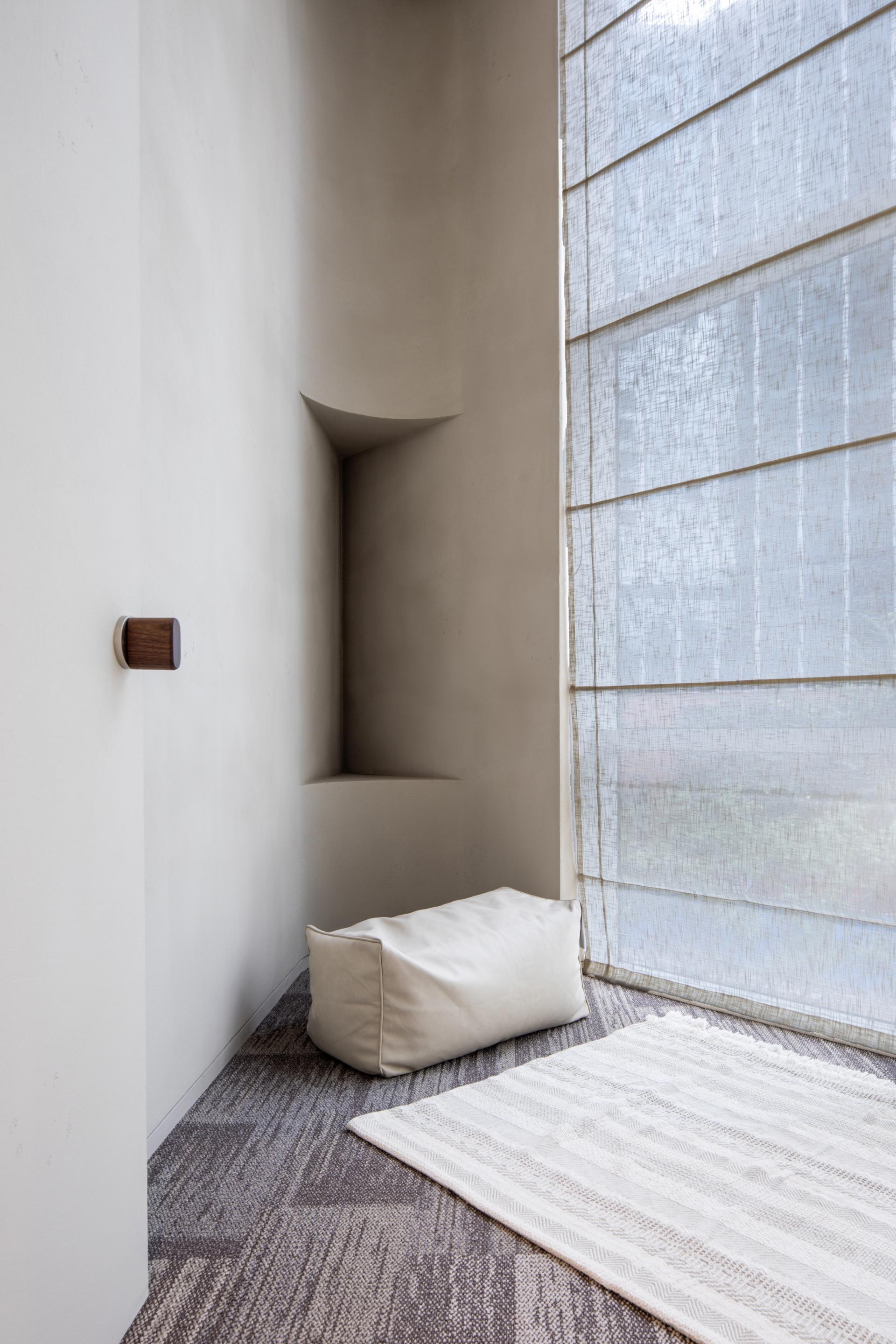 대기 공간에서 사용자는 혼자이면서, 혼자가 아니다. 벽은 개별자의 심리적 경계를 보호하지만, 경계가 단절되지 않도록 빛은 그 틈을 가로지른다. 그 기다림은 결핍의 시간이 아니라, 감각이 다시 자리를 찾는 존재의 교정 과정이다. 누군가의 시선이 직접 닿지 않아도, 타자의 존재를 감지할 수 있는 간접적 연결 장치이며, 환경심리학적으로 보았을 때 불안의 자기증폭을 완화하고, 관계적 수용성이 회복되는 정서적 안전지대를 구성한다.