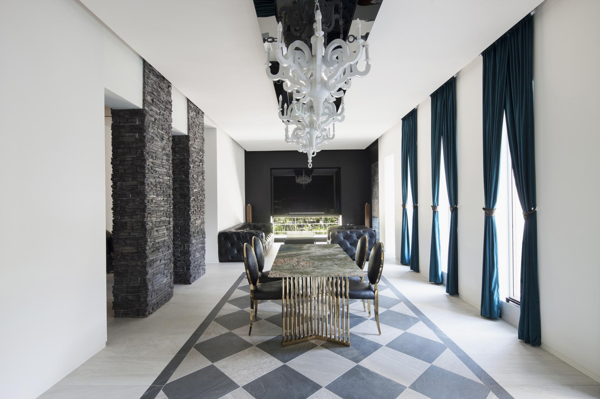 까사 카바나의 내부를 채우는 색감, 형태, 조명 등 역시 부티크 호텔의 분위기를 담고 있다. 안락하고 따뜻한 가정집의 느낌과는 사뭇 다르다. 새롭고 화려한 장식과 디테일들을 적용한 결과다. 공간은 총 4개 층으로 구성된다. 호텔 리셉션처럼 연출된 지하 1층, 연회장과 같은 1층, 부부의 침실과 라운지 바가 있는 2층, 그리고 자녀들의 방이 있는 3층이다. 이러한 층별 구성은 마치 로비에 들어서서 호텔의 엔터테인먼트를 체험하고 객실에 머무는 것과 같은 느낌을 선사한다.