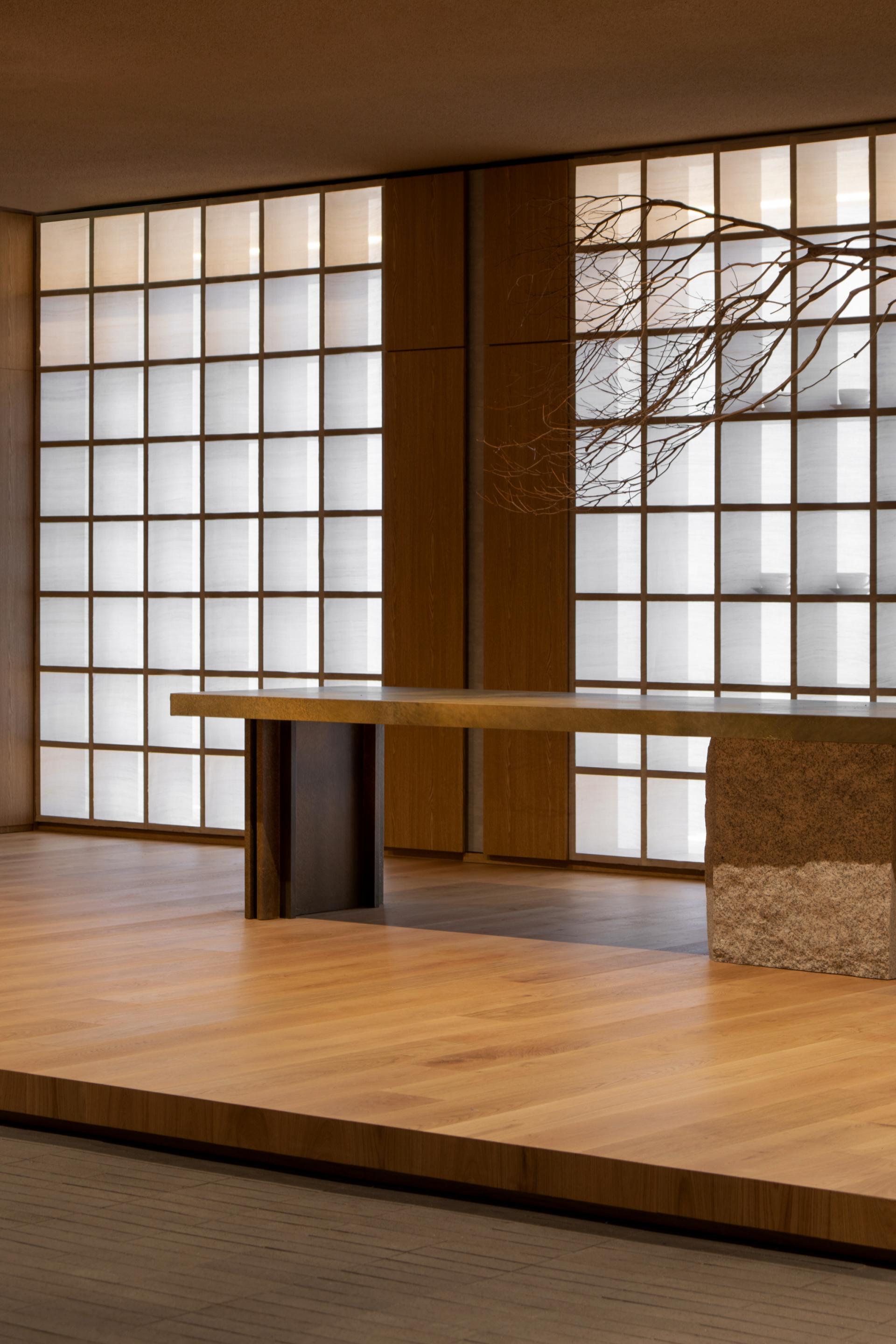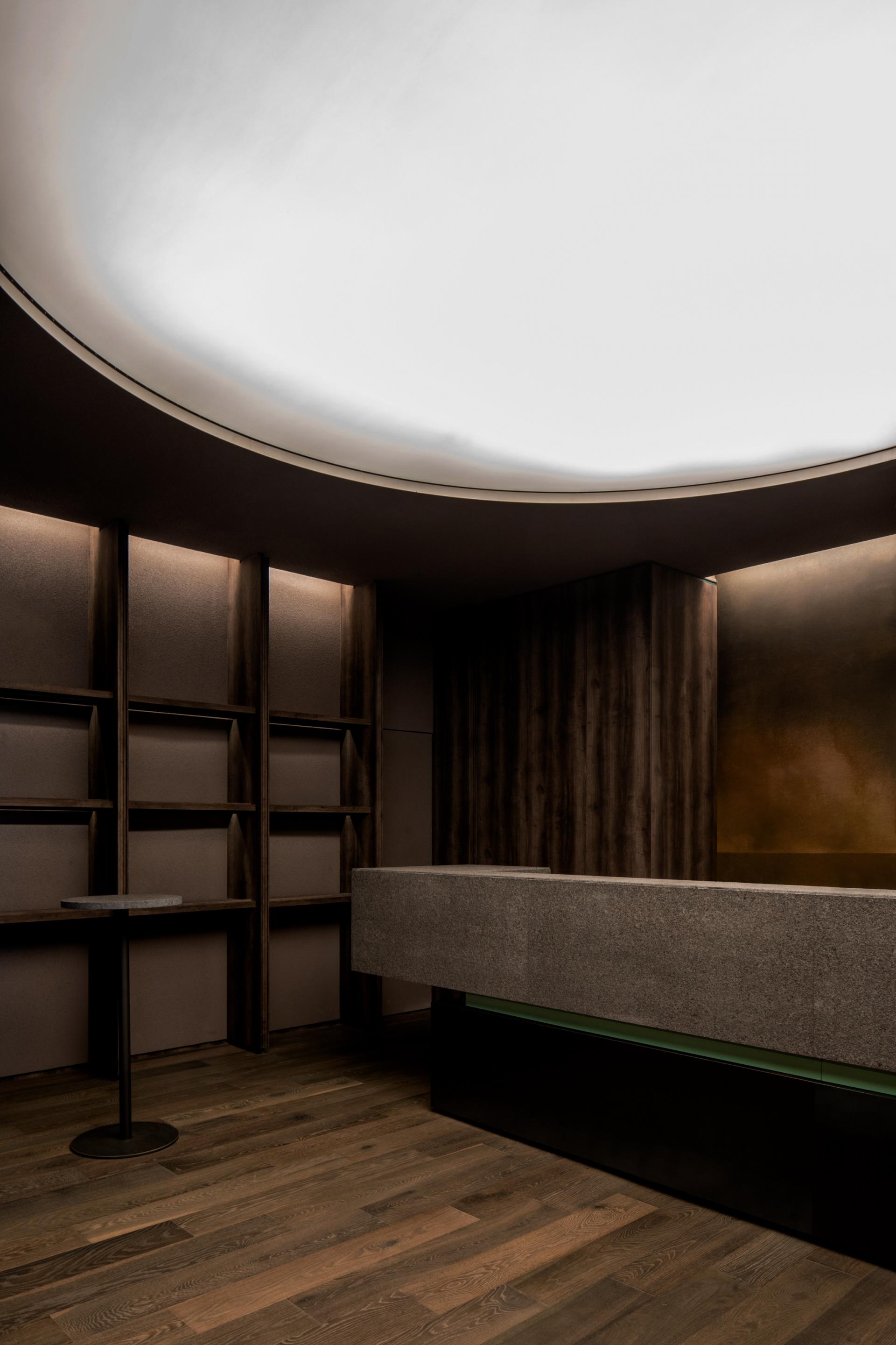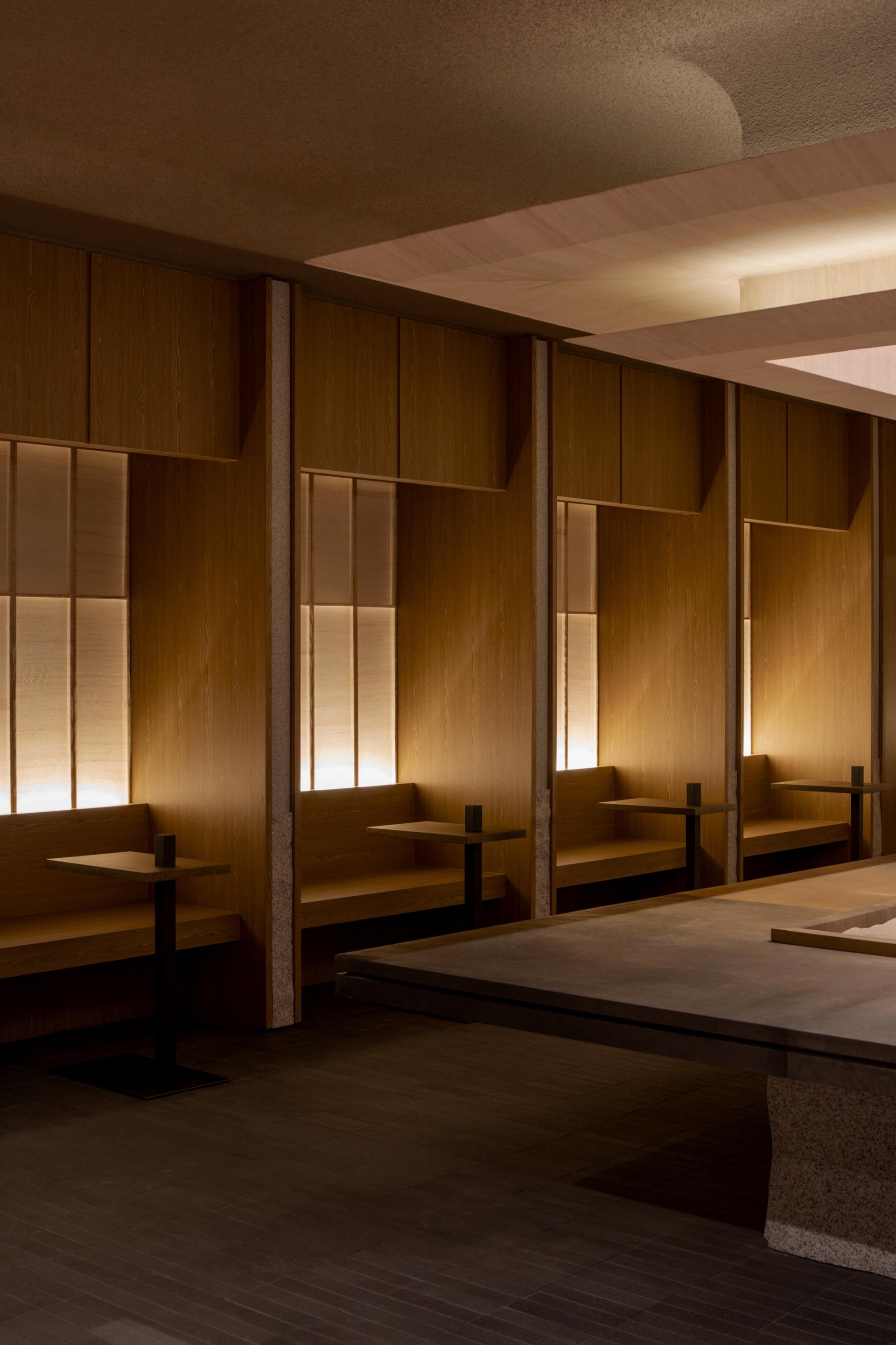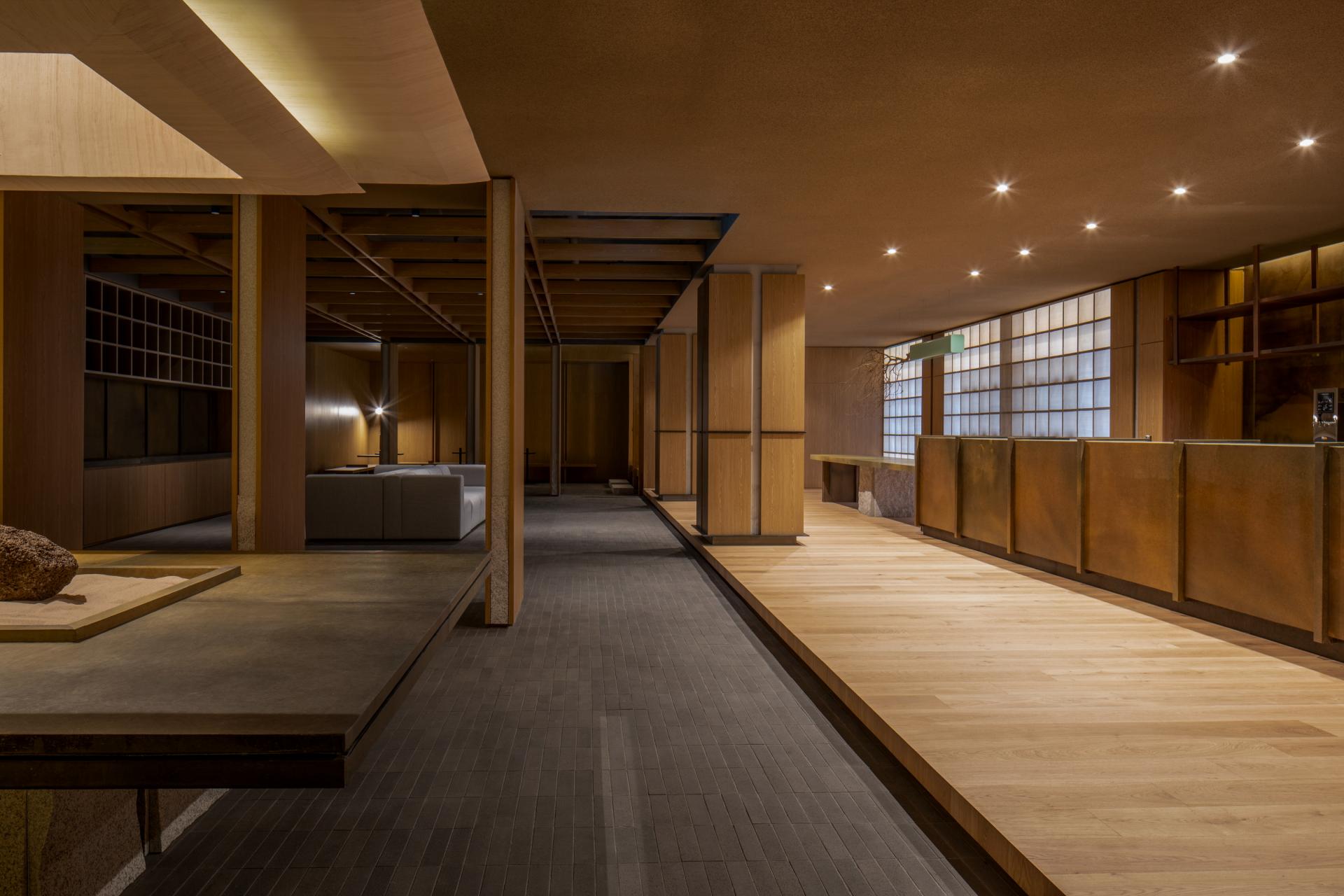 The form expressed through the restrained and crude proportions of the exterior provides depth following the flow of visual perspective, endowing the space with immersion, and we made the beauty of untechnical homeliness expressed as such be the medium leading the extended scene connected to the interior. By placing an espresso bar containing the client’s management philosophy of pursuing the originality of coffee and a roasting room in the space first encountered upon entrance, we manifested the emblem of sincerity toward coffee with heaviness and depth. The second space encountered following the heaviness and depth is produced with four scenes, designed to allow feeling a variety of emotions and contemplation through the harmony of openness and closedness, the dynamic and the static, and the space was endowed with refinement that can harness warmth even with shaded light by dressing it with naturalistic materials such as lacquered hanji and hemp cloth, etc.
