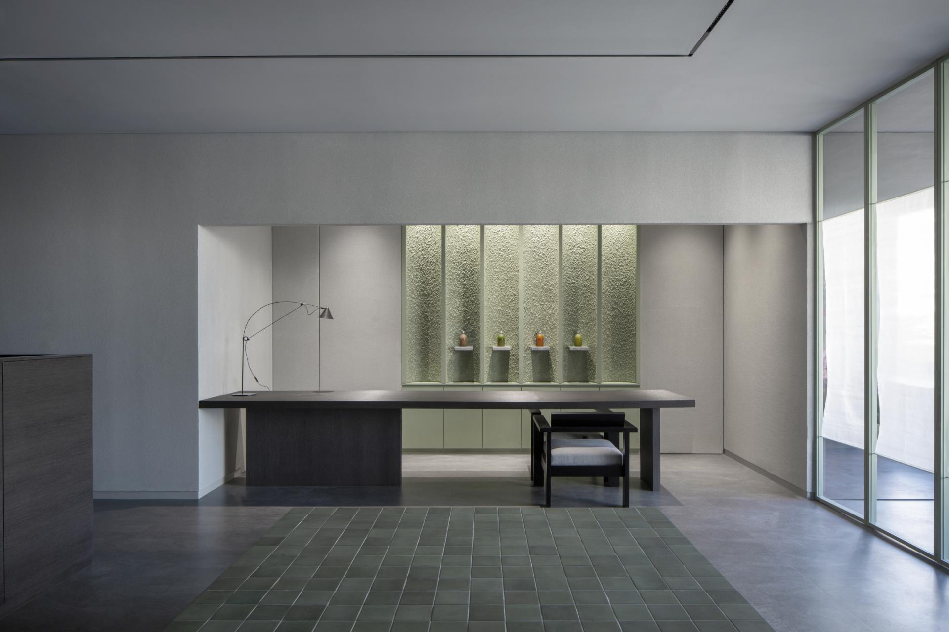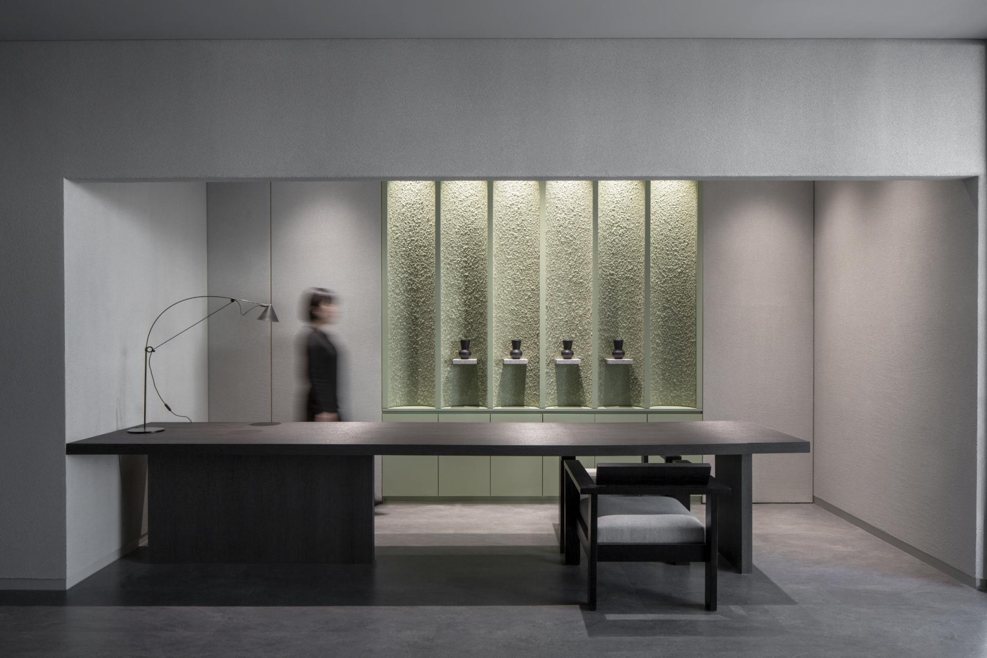 우리는 추상적 사유의 표현과 본래의 평면성에 집중하여 단순한 공간 안에 내재된 명상적인 분위기가 표현되기를 바랐다. 이는 시각적 절제를 통해 사용자가 고요함과 그 순도에서 느낄 수 있는 본질적 치유를 느끼길 바랐기 때문이다. 추상은 구상보다 더 많은 말들을 걸어온다. 내부로 들어서면 비춤으로써 기둥의 열주가 끝없이 이어진 복도를 마주하게 된다. 이렇게 표현된 몰입감은 치유의 공간으로 진입하는 방향을 안내하며, 잔잔한 짙음 속 균형의 색채로 칠해진 삼차원의 바탕을 마주하게 된다. 이 단순함과 묵직함은 비어있음으로 환자를 이끌며 공허의 터를 제공한다. 공허의 터와 마주하는 대면의 구축 공간은 질감으로 점철된 바탕으로 강세를 주며 색면적인 정서를 부여함으로 환자와 교류한다. 곳곳에 흐르는 균형의 색채는 일상 속 평온의 휴식처를 뜻하며 공간의 이동에 따라 가구 또는 벽으로 이동하며 안 팎의 경계를 흐리는 몰입의 역할을 한다. 나선형으로 이어지는 계단을 따라 내려가면 은은한 짙음, 끝과 끝이 불분명한 복도를 마주한다. 그 너머 간극의 공간은 순수한 형태의 전이공간으로서의 본질적인 순수성을 추상하며 고요함으로 치유에 몰입케한다. 낮은 수평으로 뻗어진 가로선과 섬세하게 뻗어진 세로 금속 축은 기능을 넘어 그 자체로의 형태성을 공간에 새기고자 했다.